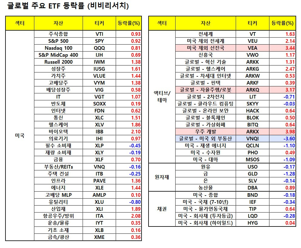지난밤 글로벌 주요 ETF 동향