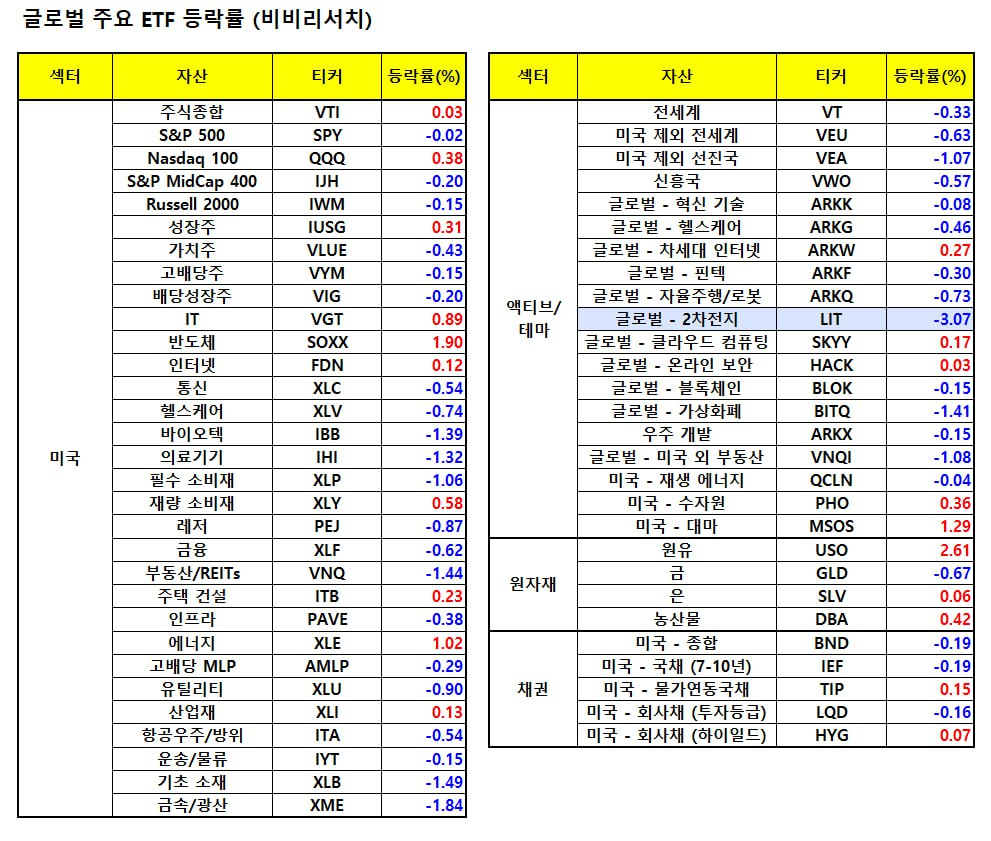 - 넥스트라 에너지(-0.71%), 듀크 에너지(-1.94%) 등 유틸리티 업종도 높은 금리 여파로 부진.