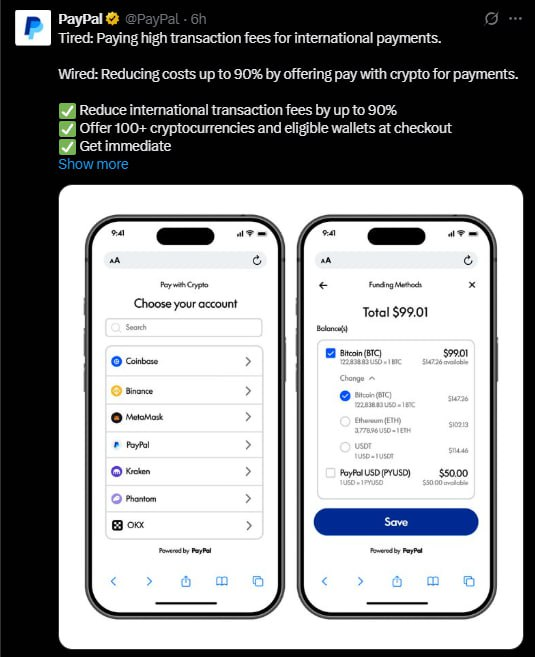 - 페이팔(+0.31%)은 조만간 100종 이상의 자상자산을 결제 수단으로 받을 수 있는 암호화폐로의 결제 기능을 가맹점 대상으로 출시할 예정이라는 소식에 상승.