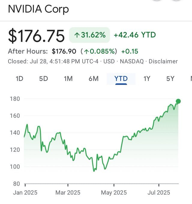 - 엔비디아 주가, MS·애플 실적 발표 앞두고 175달러 돌파...역대 최고치