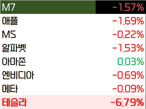 - 더불어 테슬라(-6.79%)가 머스크의 정당 설립 발표로 인해 크게 하락하는 등 개별적인 종목군의 부진도 영향.