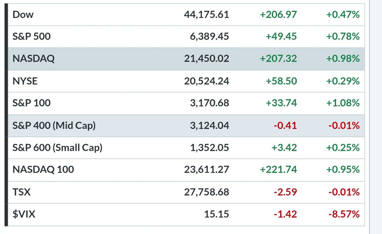 - 다우존스 산업평균지수는 206.97포인트 상승하며 0.47% 오른 44,175.61에 마감함.