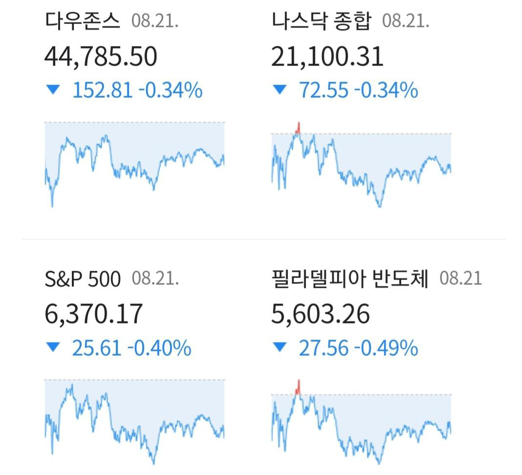 - 08/22 미 증시, 잭슨홀 컨퍼런스 앞두고 경계감과 반발 매수 속 하락