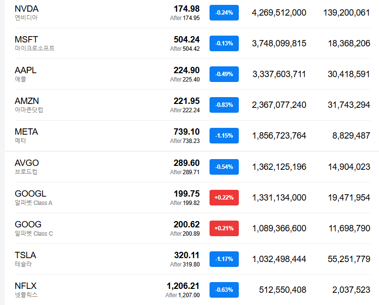 - MS(-0.13%)는 소폭 하락한 가운데 알파벳(+0.21%)은 새로운 픽셀10 스마트폰 발표를 이유로 소폭 상승.