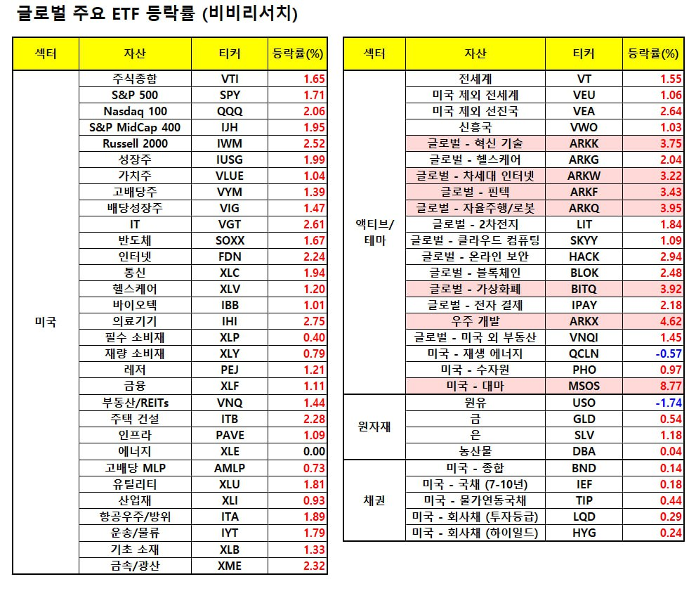 - 월요일 글로벌 증시가 전반적으로 상승한 것도 투자심리에 도움이 되었습니다.