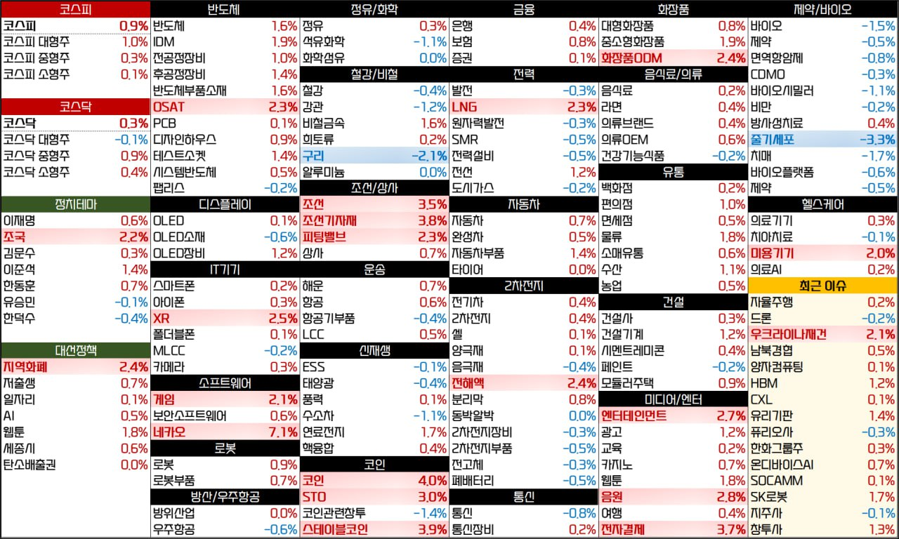 - 엔비디아(+0.81%)는 트럼프의 반도체 칩에 대해 100% 관세 부과 언급에도 광범위한 면제 조건 등을 이유로 상승 출발 후 매출 소화. 그러나 장 마감 직전 결국 상승.