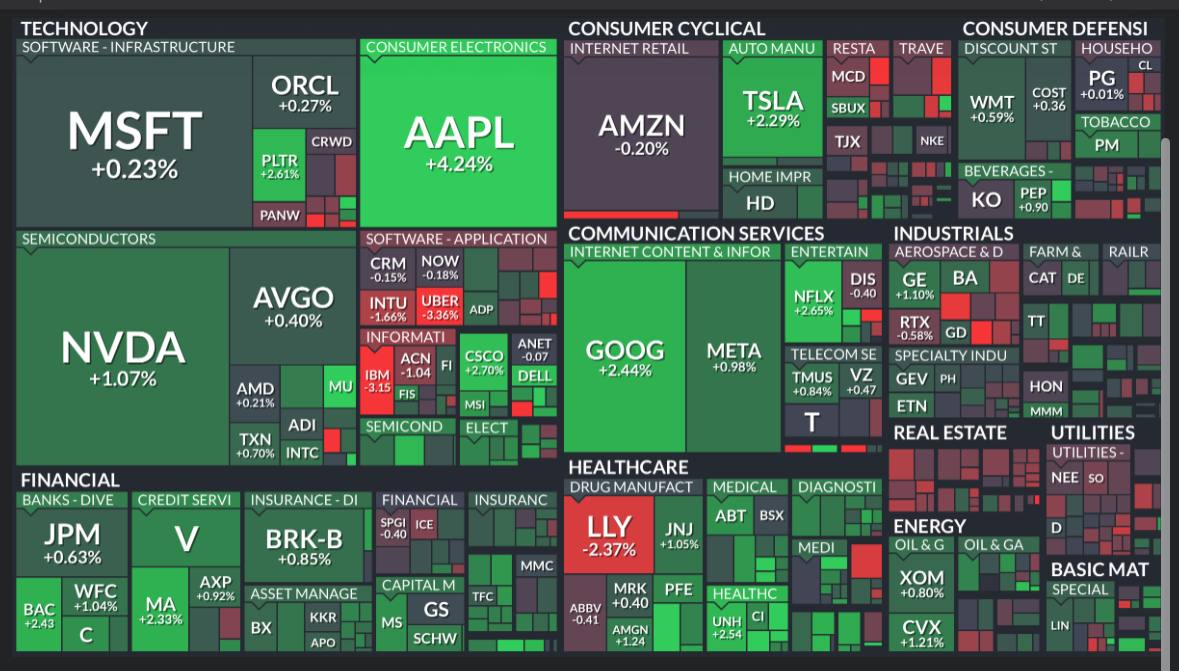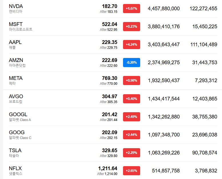 - 애플(+4.24%)은 자본지출 확대에 대해 주요 투자회사들이 긍정적으로 평가하고 있다는 점이 부각되며 상승. 관련 소식이 결국 트럼프 관세에서 자유로울 수 있다는 점이 상승을 지속하게 만들었다고 볼 수 있음.