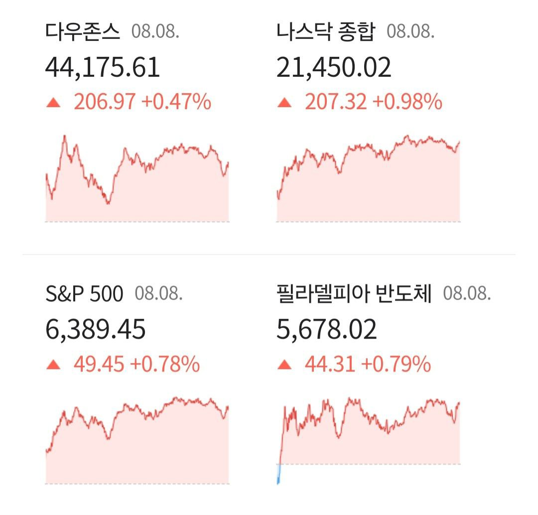 - 08/11 미 증시, 트럼프 관세에 대한 무감각과 개별 기업 강세로 상승