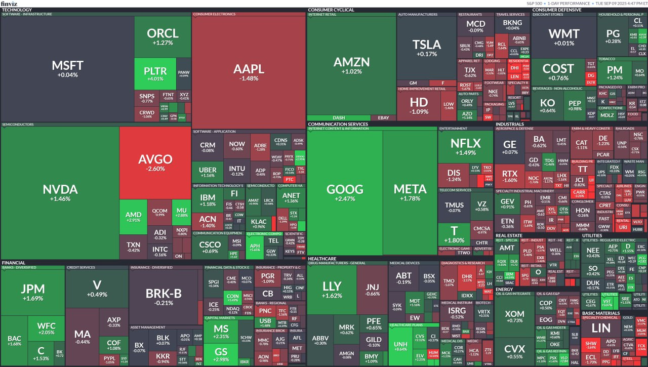 - 애플(-1.48%)은 아이폰 17 등 주요 기기 발표 관련 이벤트에서 에어팟 프로의 실시간 통역을 제외하고 새로운 내용이 없었다는 점에서 하락.