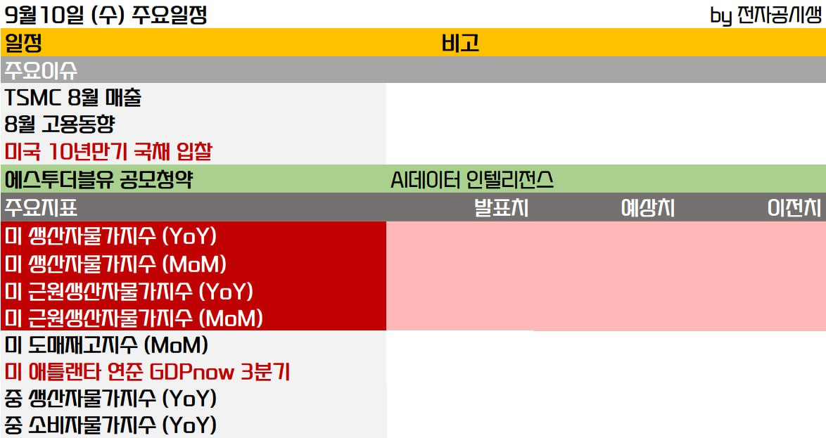 - 다만 연방준비제도가 올해 금리를 더 공격적으로 인하해야 한다는 요구는 강화될 수 있는 데이터. 수요일 8월 생산자물가지수 발표 예정.