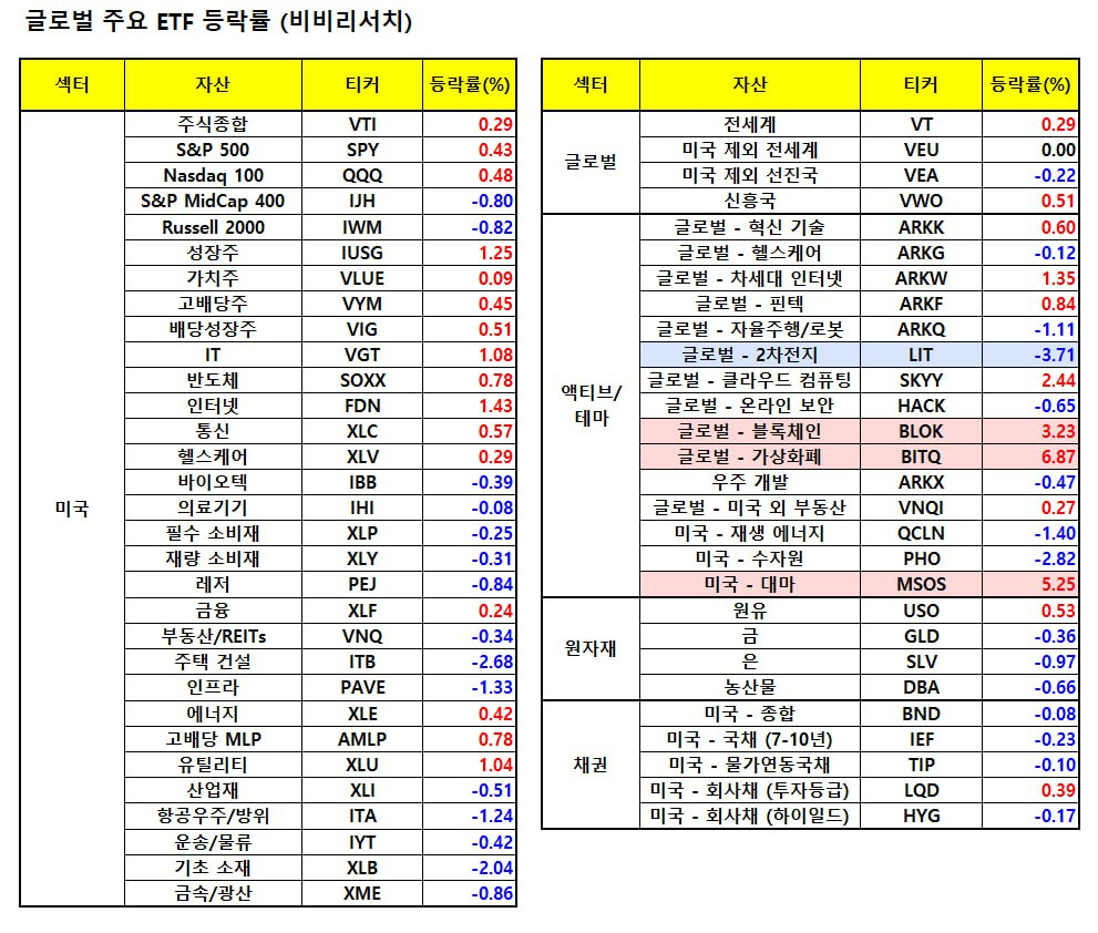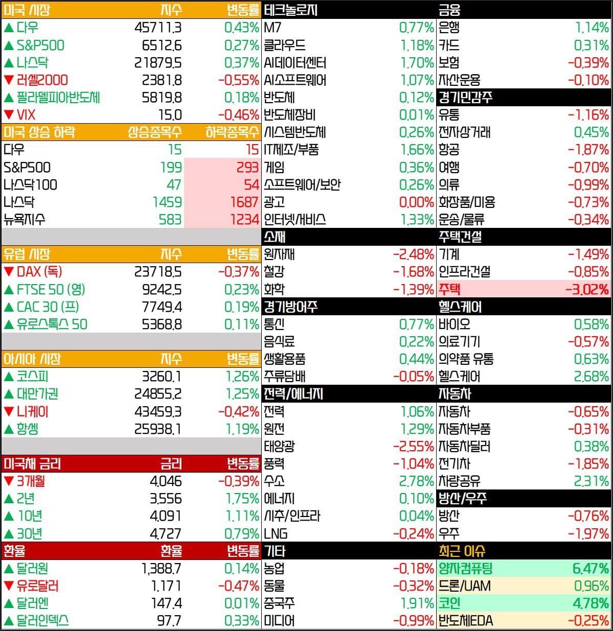 - 메타 플랫폼(+1.78%)도 AI 투자에 대한 성과 기대 등을 반영하며 강세.