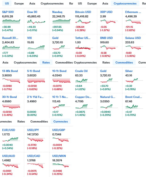 - S&P500 ▲ 6,615.28 (+0.5%)