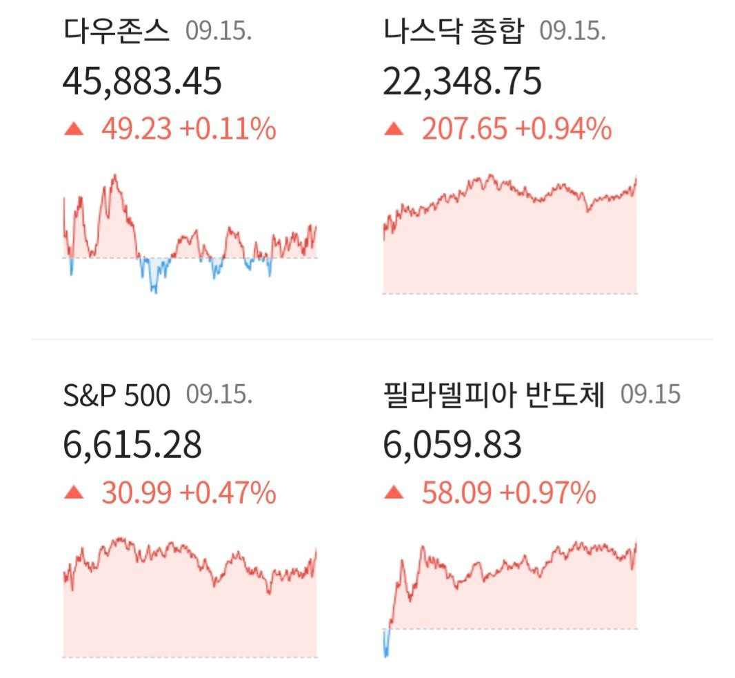 - 09/16 미 증시, 트럼프의 빅컷 금리인하 언급과 미-중 합의 기대 속 나스닥 중심 상승