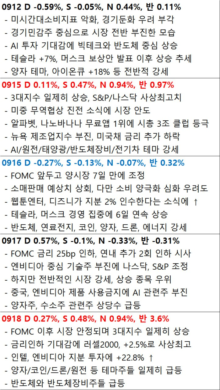 9월 19일 시황. 금리 인하 효과 + 반도체 초강세에 상승