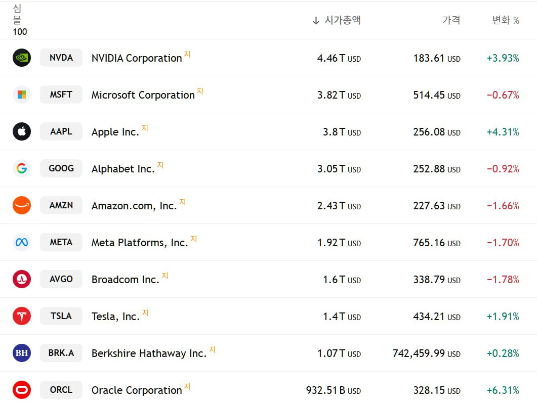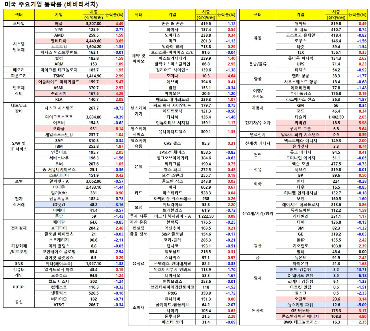 *특징 종목: 애플, 오라클, 엔비디아 강세