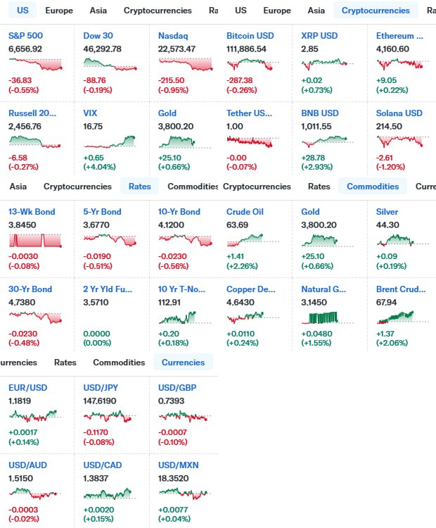 - S&P500 ▼ 6,656.92 (-0.6%)