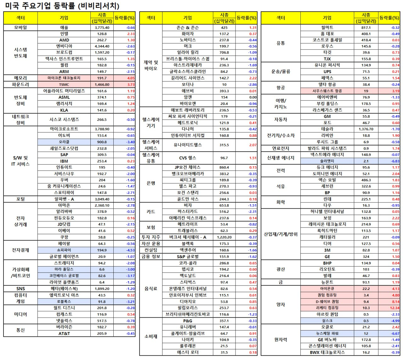 - 브로드컴(+0.04%), AMD(+0.69%) 등 여타 반도체 기업들은 상승을 반납.