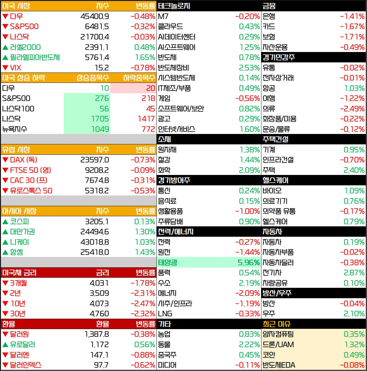- DOW ▼ 45,400.86 (-0.5%)