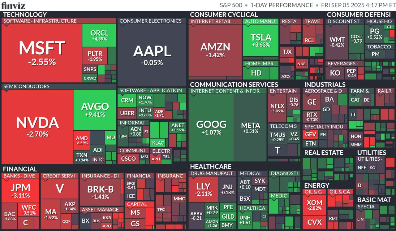 - 차세대 엔비디아로 꼽히는 브로드컴 $AVGO 는 실적 발표 후 큰 폭으로 상승. 반면 오픈 AI 가 엔비디아나 AMD $AMD 대신 브로드컴을 자체 AI 칩 공급처로 선정했다는 브로드컴의 발표에 엔비디아와 AMD 크게 하락