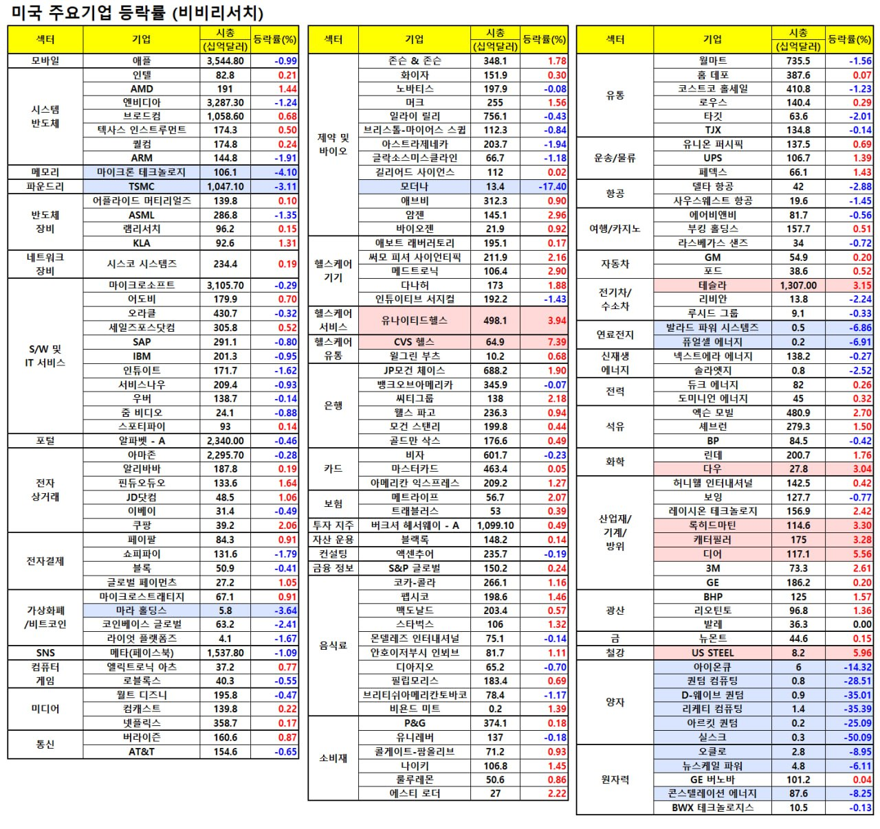 - 유나이티드헬스(+3.93%), 휴나마(+6.81%), CVS헬스(+7.31%), 엘리번스 헬스(+4.02%) 등은 정부의 2026년 메디케어 어드벤티지 플랜에 대한 지불금 인상 언급에 상승.