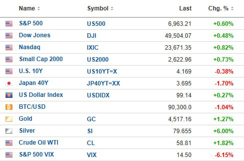- 01/10 미 증시, 고용보고서 소화 후 대법원 판결 지연과 미,일의 유동성 기대에 상승 확대