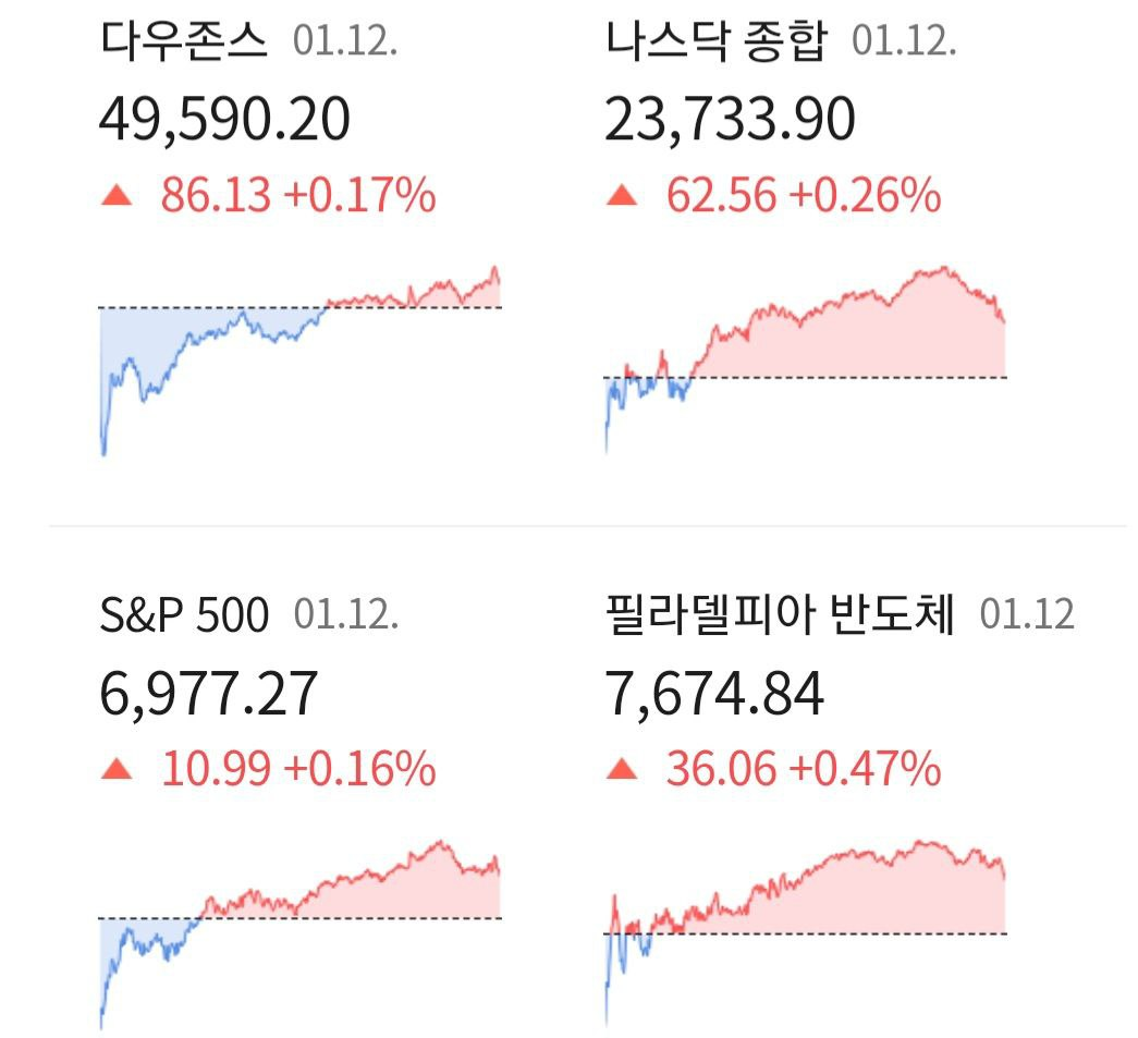 2026년 1월 13일 미장 마감
