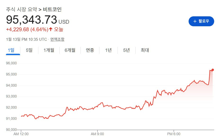 - [뉴욕 코인시황/마감] 비트코인 9.6만달러 터치… CPI 훈풍에 ‘10만달러’ 카운트다운