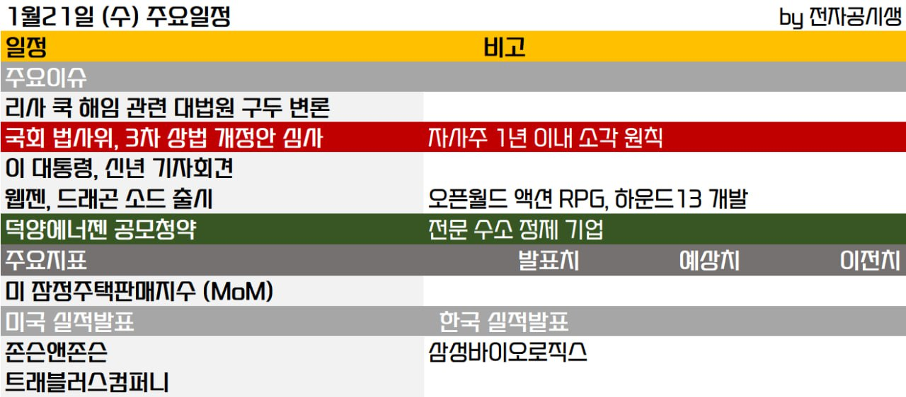 - 사설 ③ : '금지 성분' 치약 2900만 개 팔고 늑장 회수한 애경 - ※ 1/21(수) 키워드 : 北무인기·전쟁개시 / 李대통령·피습사건·테러·지정 / 드론사·폐지·합동작전사·창설