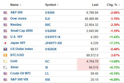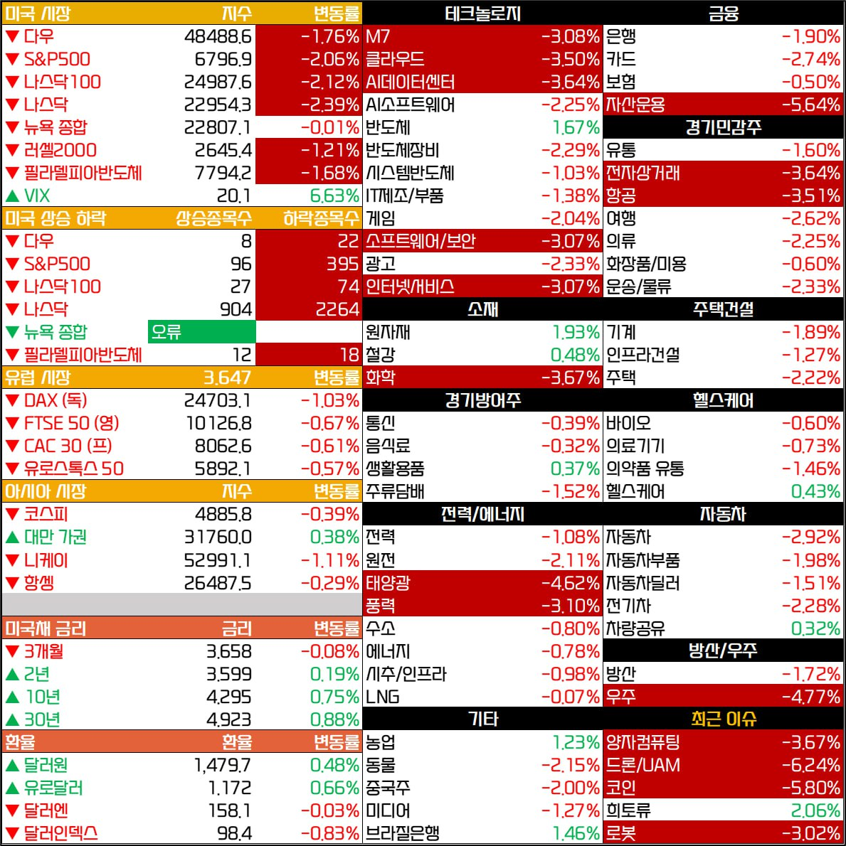 - S&P 500, 2026년 연초 상승분을 모두 반납.