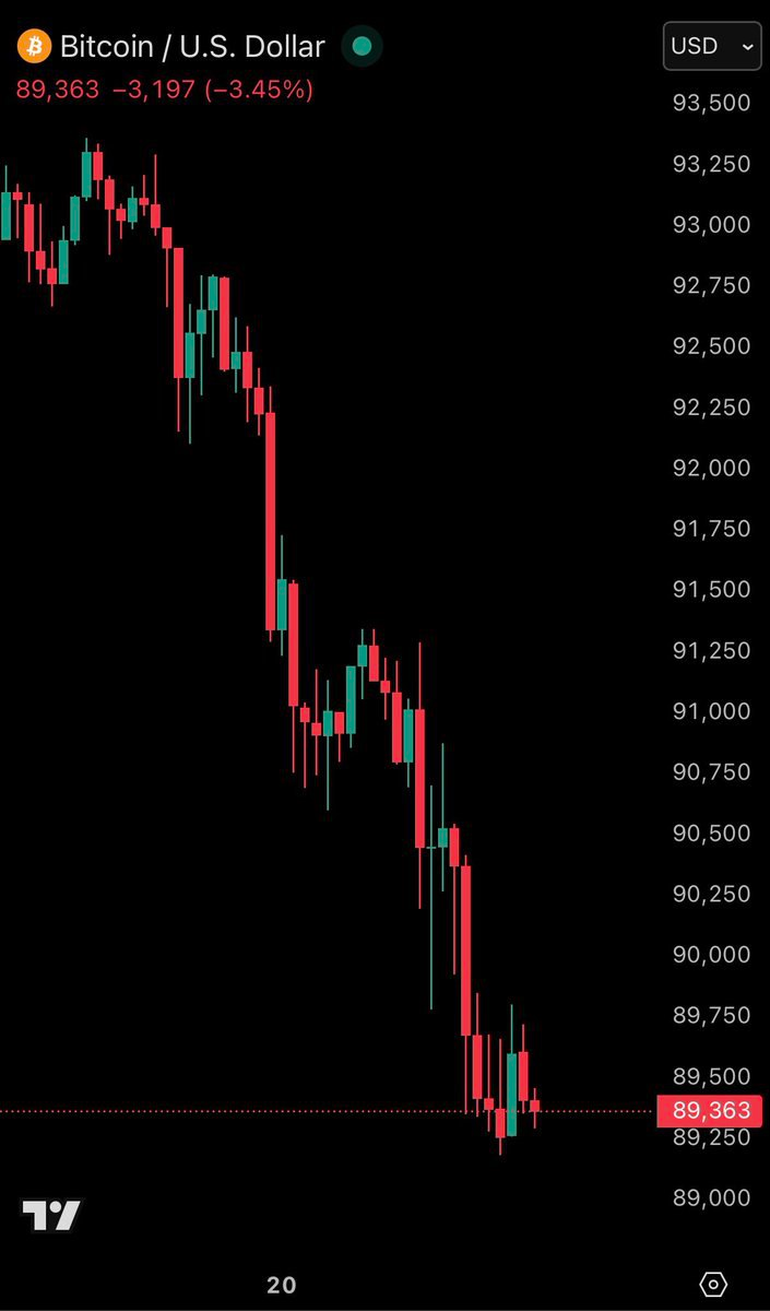 - 비트코인, 글로벌 증시 및 채권 매도 확산 속 $90,000 아래로 하락하며 단기 약세 심화.