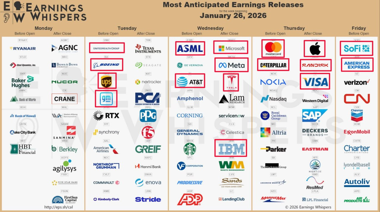- 이외에 민간 건강보험회사인 유나이티드헬스 그룹과 자동차회사인 GM이 27일 개장 전에, 커피 체인점인 스타벅스와 에너지 설비 및 솔루션 기업인 GE 버노바가 28일 개장 전에 실적을 발표한다.