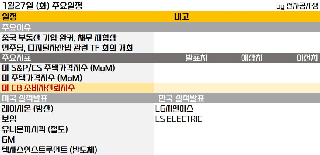 1월 27일 시황. 실적 발표 앞둔 빅테크 강세