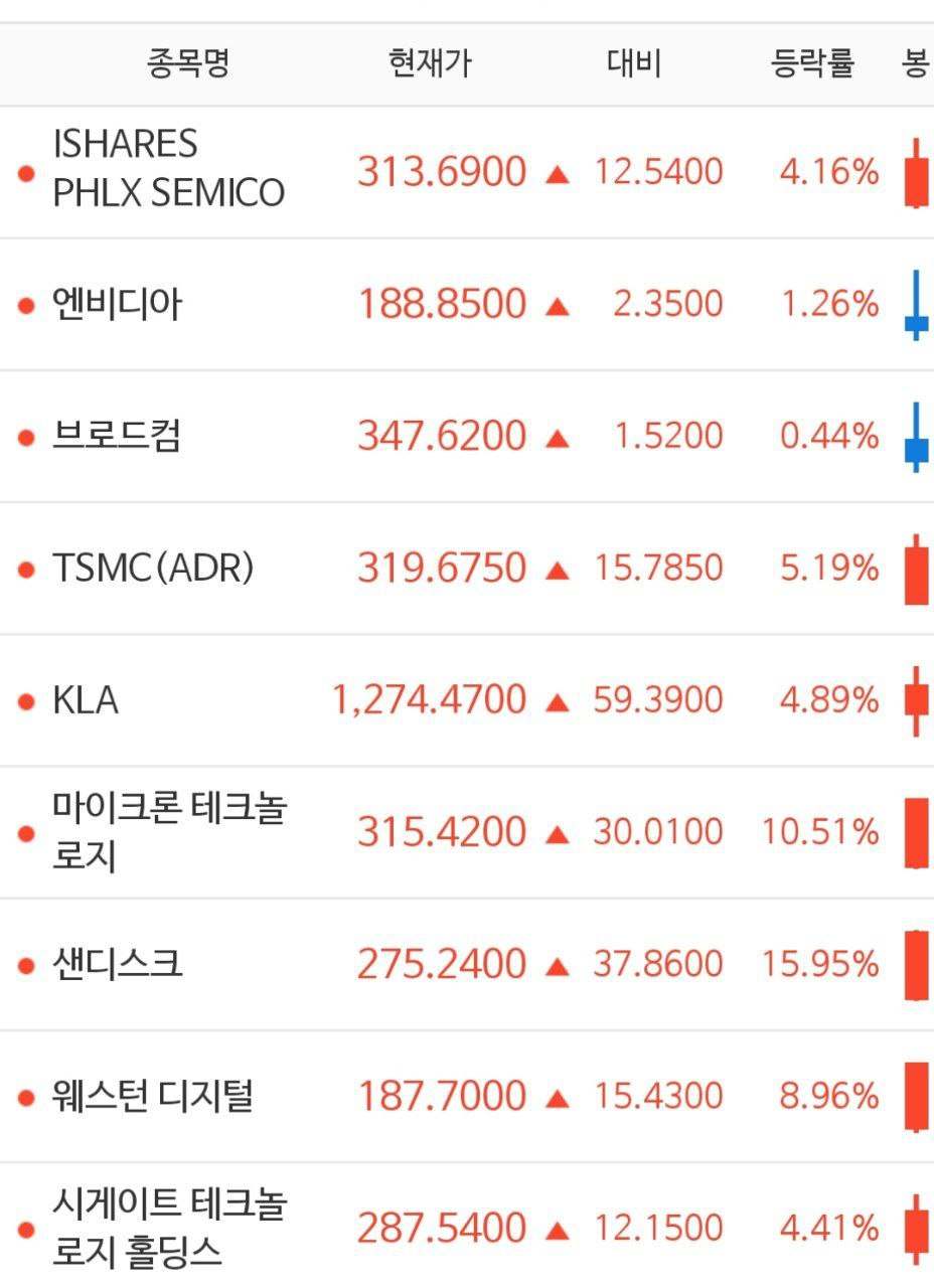 - 마이크론 10%, 웨스턴디지털, 램 리서치 등 약 9% 급등