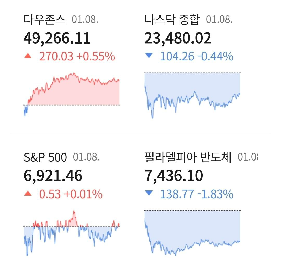 • 01/09 미 증시, 반도체 업종을 중심으로 차익 실현 매물 출회 속 혼조 마감