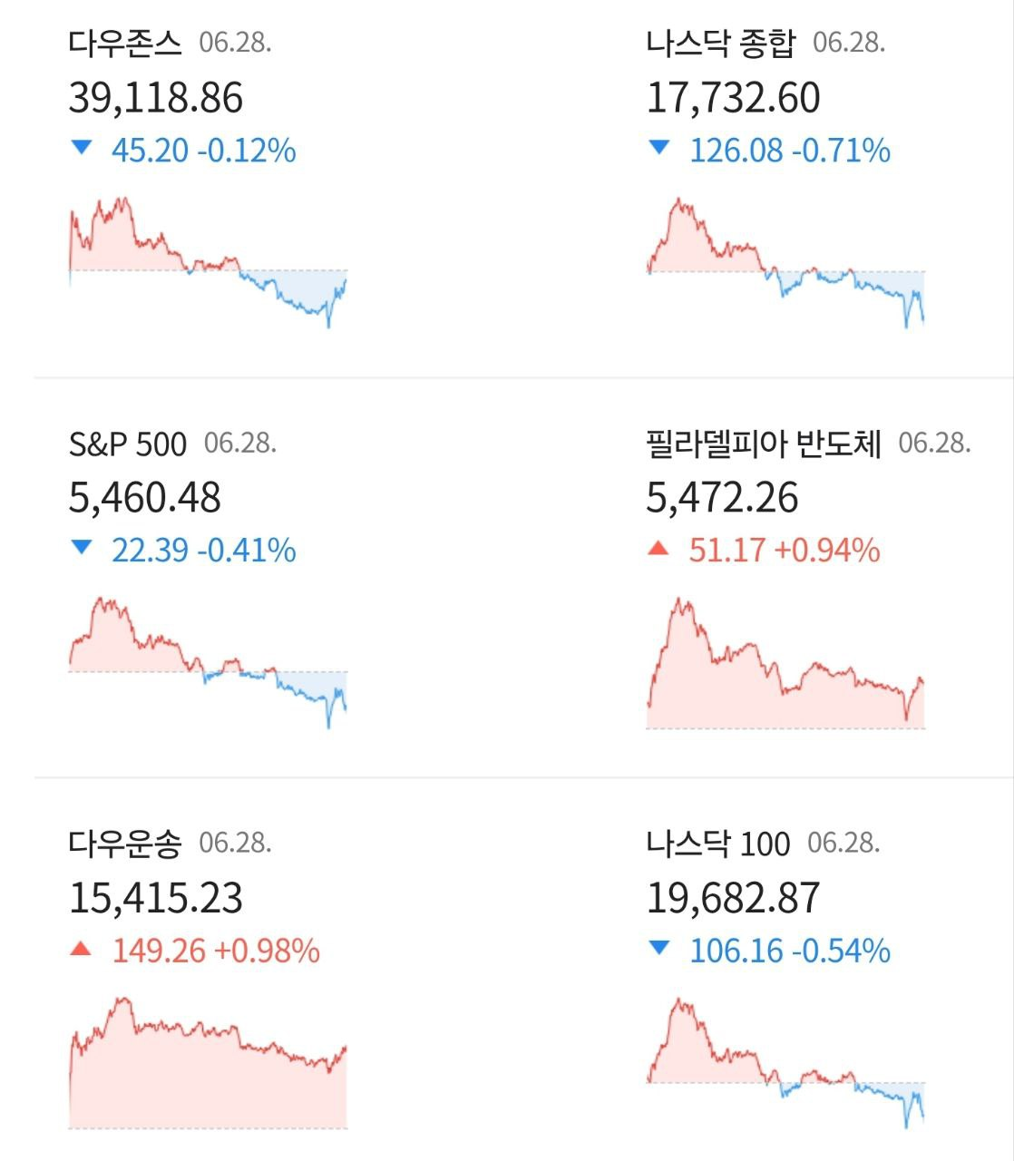 - 06/29 미 증시, 물가 둔화에도 대선 불안과 반기말 수급 여파로 하락 전환