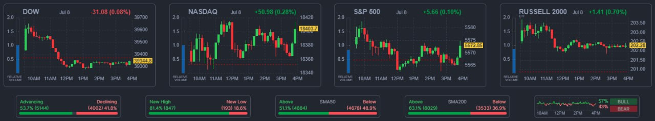 - 07/09 미 증시, 엔비디아 등 반도체 종목군의 강세에도 보합권 혼조 마감