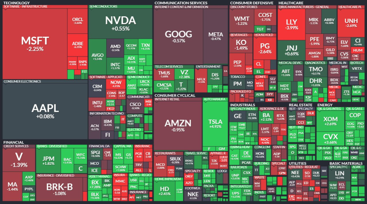 - 국채금리가 또 하락했고 전 세계 중앙은행의 매파적 발언이 미국 달러 인덱스에 부담을 주었습니다/ 달러 약세와 연준의 통화정책 전환이 경제 성장에 도움이 될 것이라는 기대감이 📍원자재 상승을 이끌었습니다/ 🛢유가는 3% 넘게 올랐고 금속 시장도 강세를 보였습니다/ 경기사이클 업종이 강세입니다