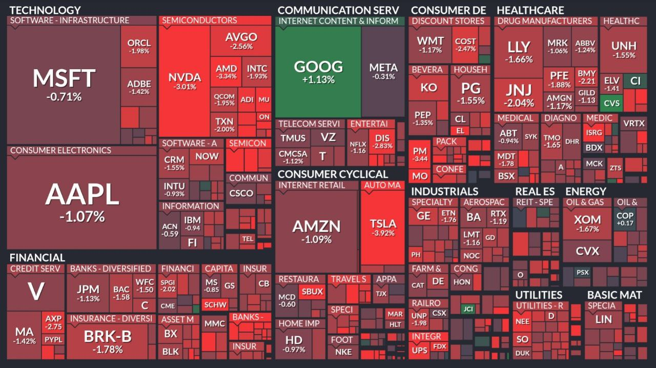 알파벳 - 구글 모회사의 주가는 약 3% 상승하며 52주 신고가를 경신했습니다. 하루 전 더 인포메이션은 상황을 잘 아는 소식통을 인용해 구글이 광고 판매 부서의 상당 부분을 재편할 계획이라고 보도했습니다.