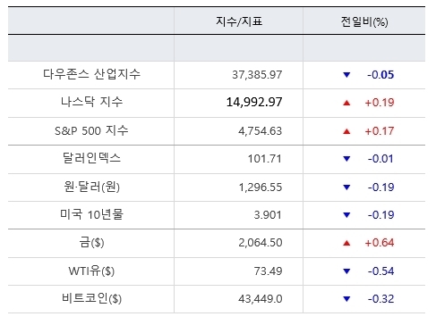 - 다우 하락했지만 상승 종목이 더 많았음