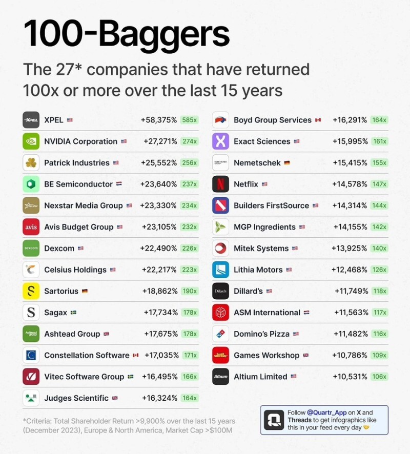 지난 15년간 100배이상 오른 회사들