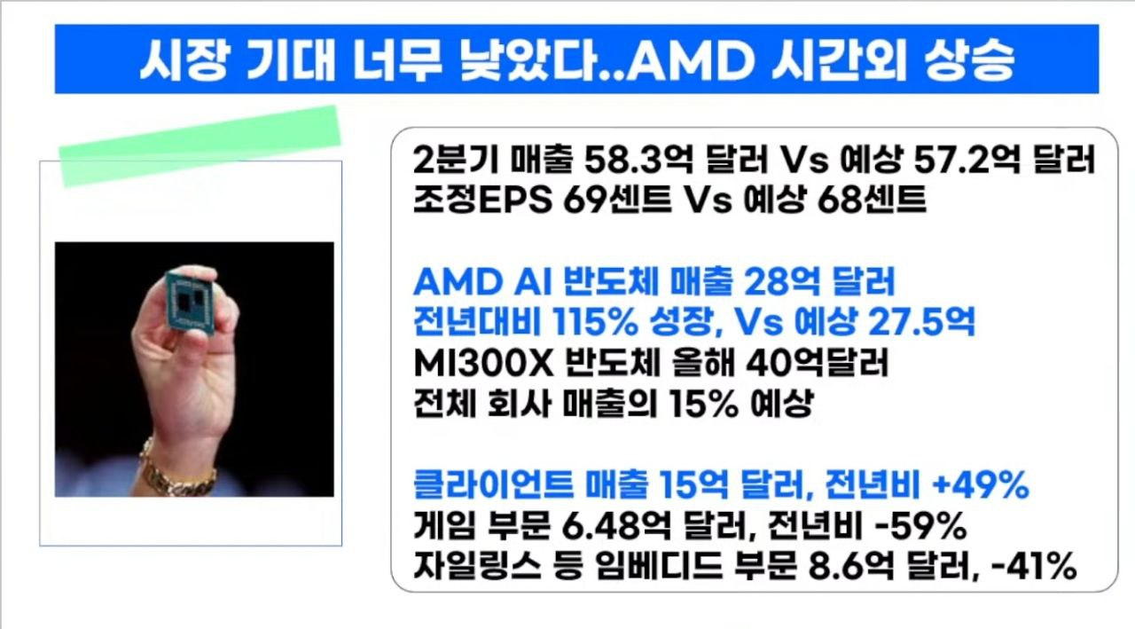 • AMD, AI 칩 매출 2배…시간외주가 급등