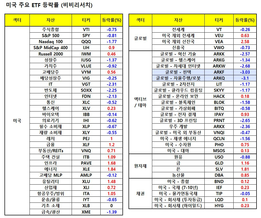 지난밤 글로벌 주요 ETF 동향