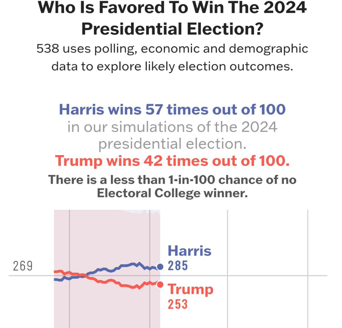 - 9월 7일 현재 여론 조사 결과로는 해리스 민주당 후보가 트럼프 공화당 후보에 1.8%p 더 많은 지지율을 유지.