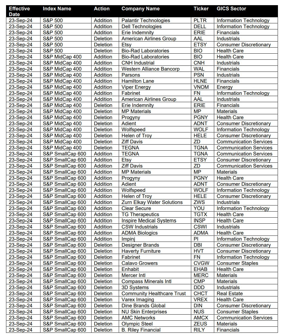 - 편입: 팔란티어 테크놀로지스 $PLTR, 델 테크놀로지스 $DELL, 이어리 인뎀니티 $ERIE