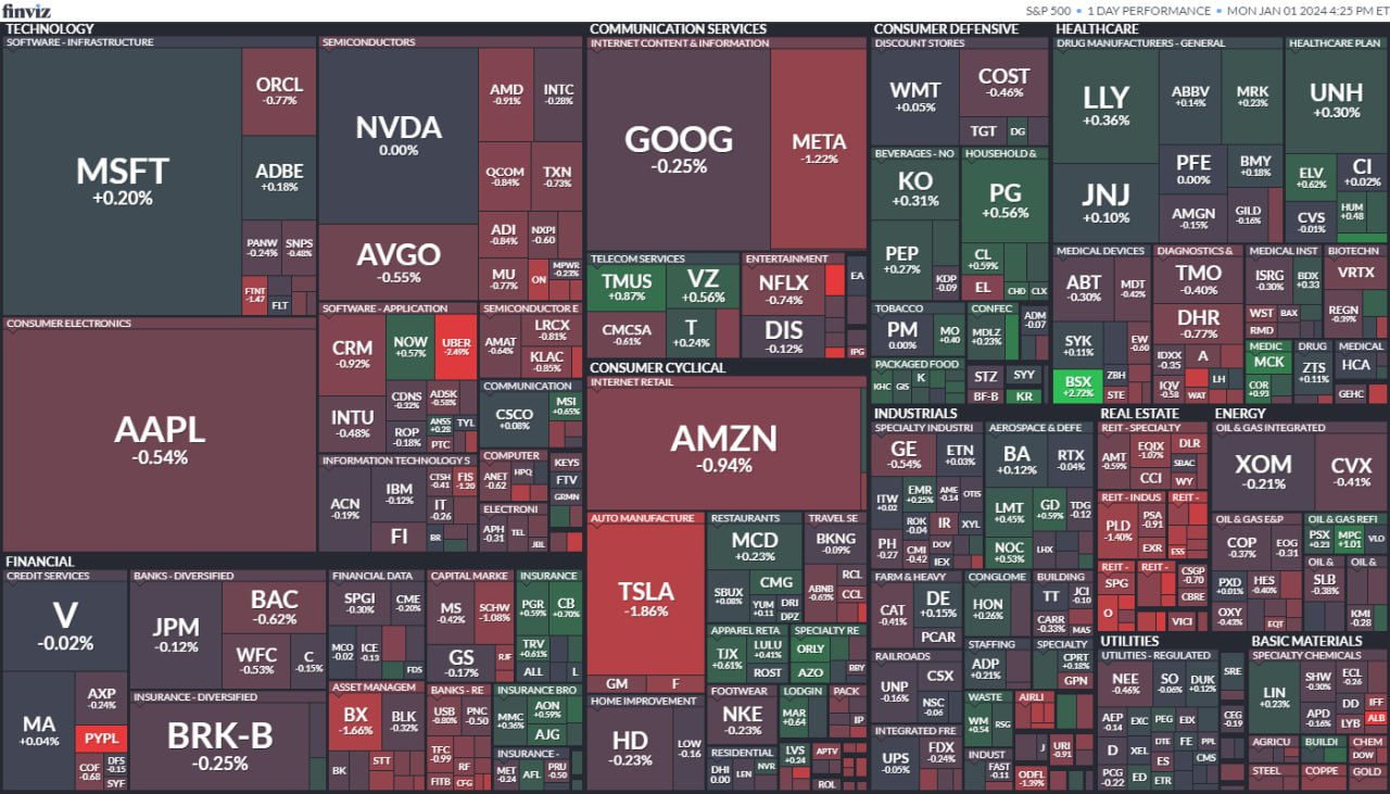 - 미국 3대 주가지수는 모두 소폭 하락해 모두 9주 연속 상승세를 기록했다. 나스닥은 0.56% 하락, 이번 주 0.12% 상승, 올해 43% 이상 상승했고, S&P 500은 0.28% 하락, 이번 주 0.32% 상승, 올해 24% 이상 상승, 다우 지수는 0.05% 하락했습니다. , 올해 들어 주간 기준으로는 0.81%, 연간으로는 13% 이상 상승했다. 메타는 상장 이후 최대 연간 이익을 기록했다.
