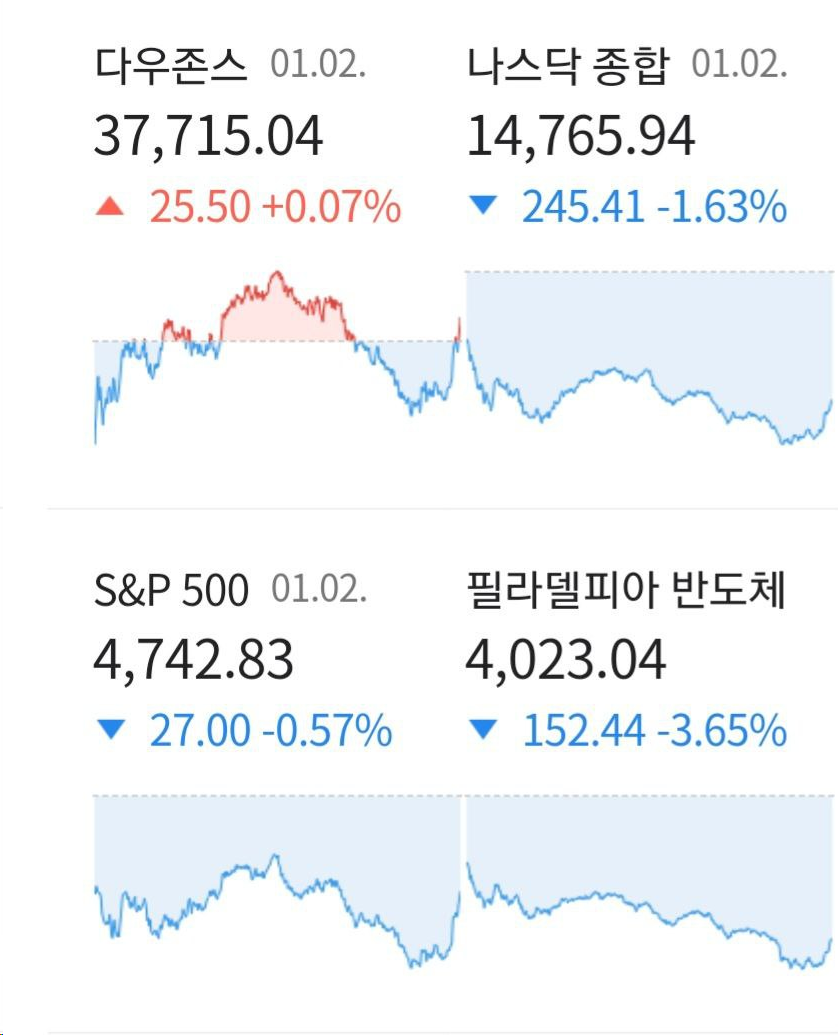 - 기술주와 반도체가 주도한 변동성 확대 미증시가 새해 첫 거래에서 급락했다.