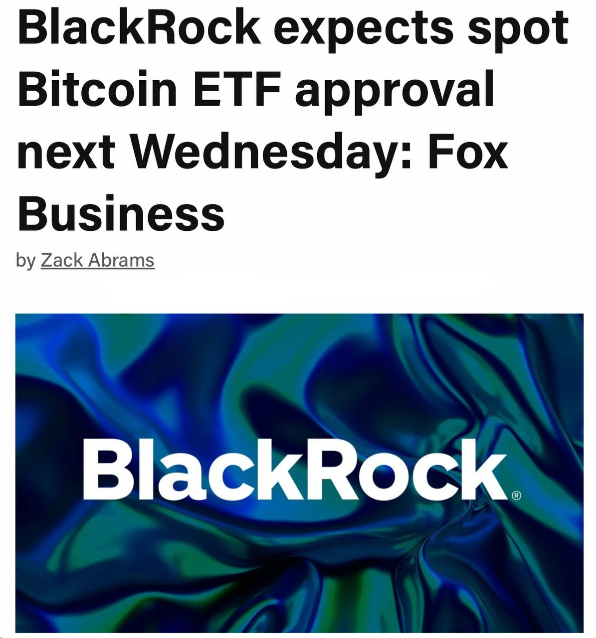 블랙락, 비트코인 현물 ETF 다음주 수요일 승인 예상