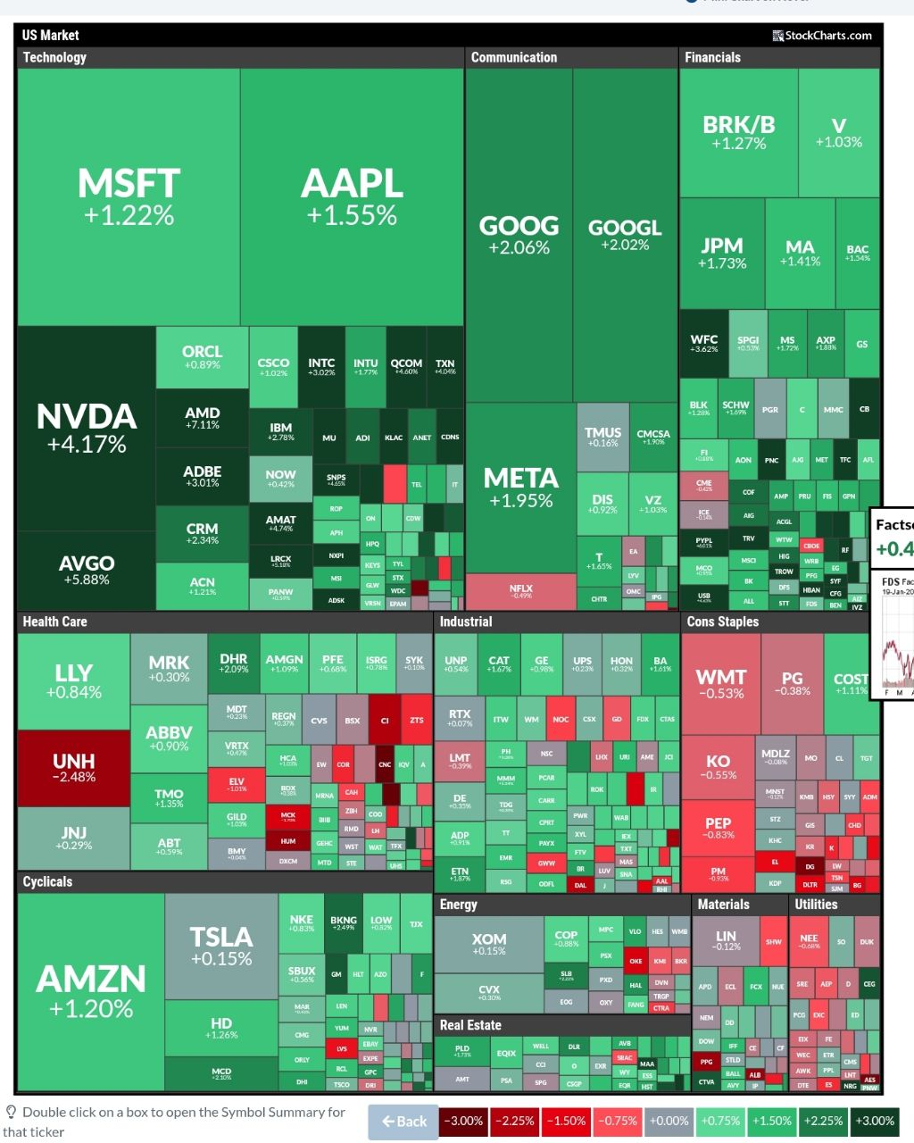 - [미국] 다우 +1.05% S&P +1.23% 나스닥 +1.70%. 기술 기업 실적 호조와 메타발 호재에 따른 인공지능 특수와 미시간 인플레이션/소비자 지표에 따른 연착륙 기대감 반영.