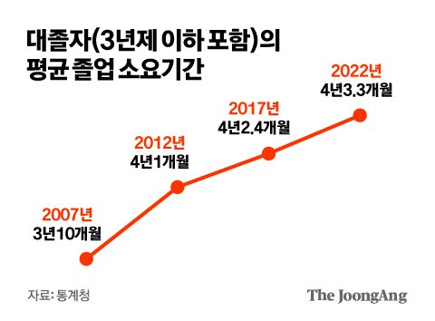 2. 늦어지는 한국인의 인생 시간표 → 93년생, 64년생 세대에 비해 취업·결혼 4년씩 더 늦어 져. 대학 졸업(3년제 미만 포함)에 걸리는 평균 기간도 2007년 3년 7개월에서 2022년엔 4년 3.3개월로 더 걸리고 첫취업 연령도 1998년 25.1세에서 2021년엔 31세로 6년 늦어져.(중앙)▼