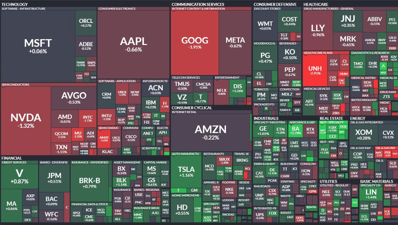 - 유나이티드헬스는 미국 법무부가 반독점 조사를 시작하면서 3% 가까이 하락했고,